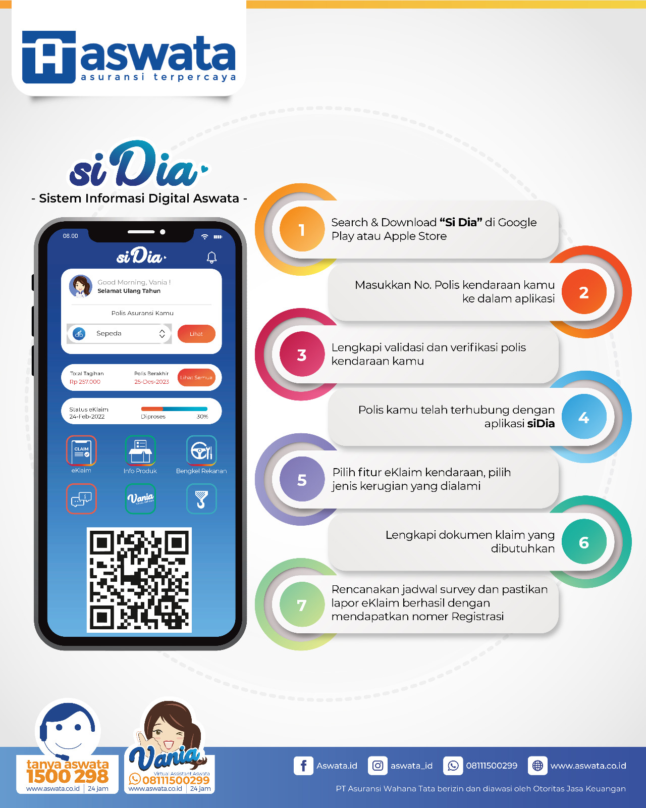 siDia - sistem informasi digital aswata dikembangkan menjadi Aplikasi Unik yang mampu memberi Layanan Digital di Industri Asuransi Umum Indonesia. siDia menjadikan penggunanya merasakan pengalaman baru untuk solusi kebutuhan perlindungan sehari-hari.