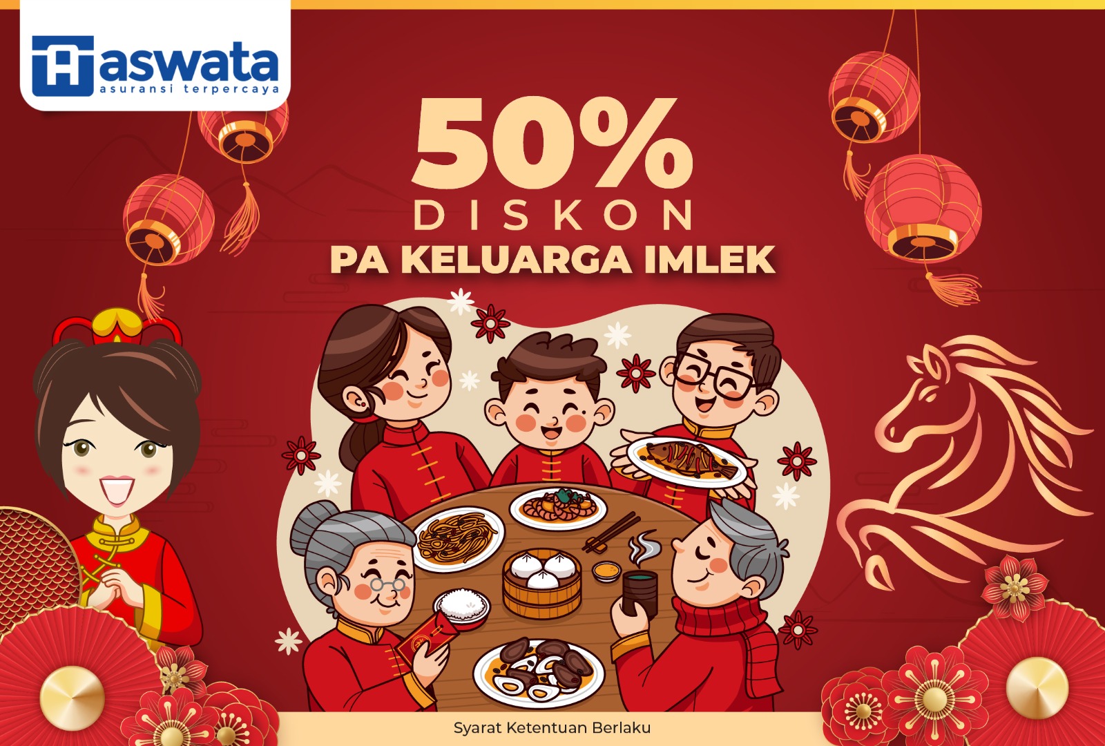 Dengan PA Keluarga, seluruh keluarga mendapatkan perlindungan 24 jam, baik di rumah maupun di luar rumah. Dengan premi yang terjangkau, bahkan ada Diskon 50% Spesial Imlek mulai dari Rp 439/hari, Anda bisa memastikan keluarga tetap aman dan terlindungi setiap hari dengan cara Chat Vania - Virtual Assistant Aswata 08111500299, lalu KETIK: PA IMLEK dan ikuti langkahnya.